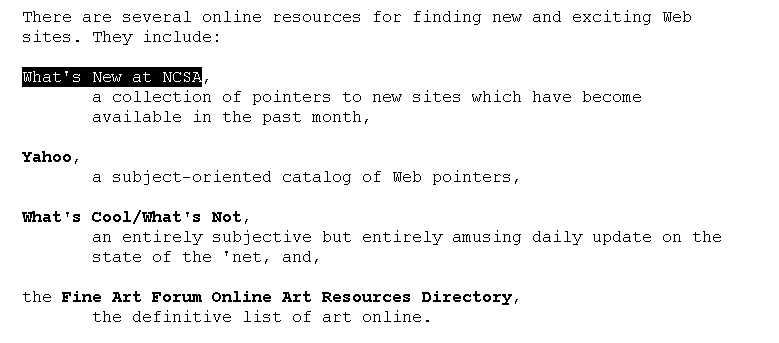 Figure 3: A menu using a definition list (Lynx)