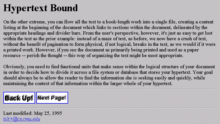 James "Eric" Tilton, HTML Guru Wannabee and Occasional Author, tilt@cs.cmu.edu(and with most of the Web style considerations contributed by Carl Steadman, carl@freedonia.com)
