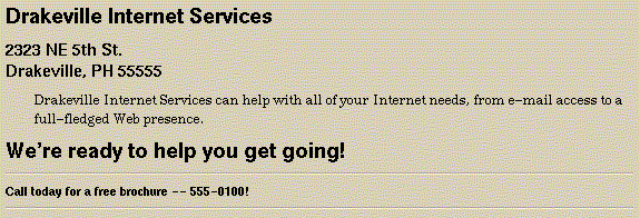 James "Eric" Tilton, HTML Guru Wannabee and Occasional Author, tilt@cs.cmu.edu(and with most of the Web style considerations contributed by Carl Steadman, carl@freedonia.com)